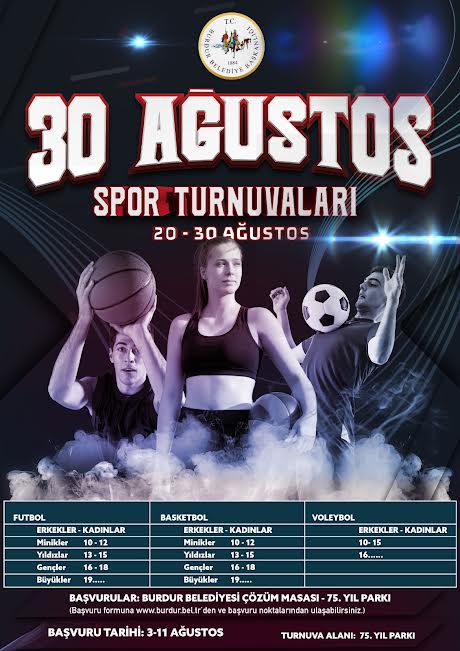 Burdur Belediyesi Zafer Haftasında Futbol, Basketbol ve Voleybol gibi turnuvalar düzenleyecek.