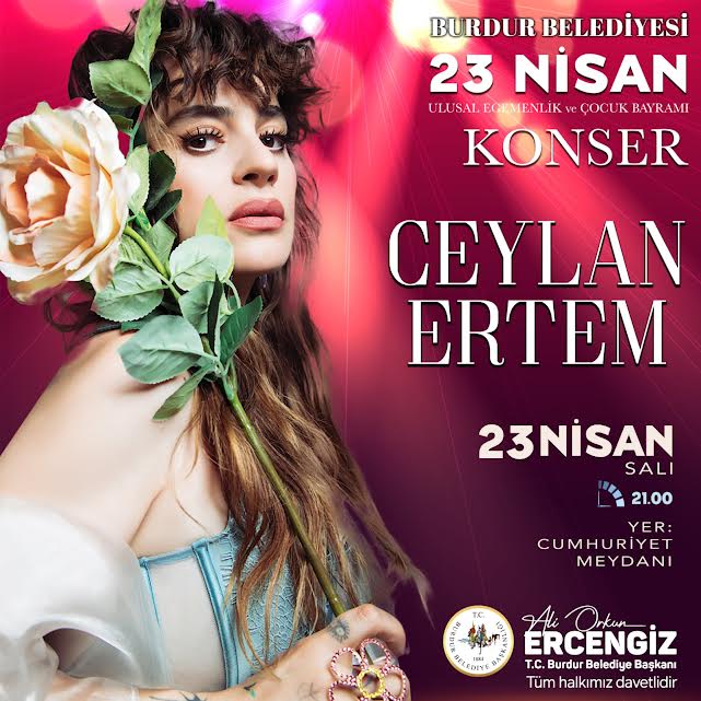 Burdur Belediyesi, 23 Nisan Ulusal Egemenlik ve Çocuk Bayramı kutlamaları kapsamında, Burdurluları ünlü sanatçı Ceylan Ertem’in vereceği konser ile buluşturacak. Ceylan Ertem konseri, 23 Nisan Salı günü saat 21.00’de Cumhuriyet Meydanında başlayacak.
