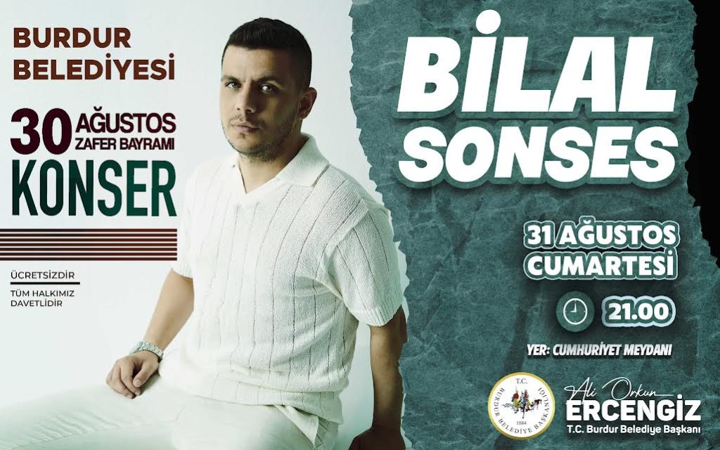 Bayram coşkusunu yaşamak isteyen tüm Burdurluları konsere davet eden Burdur Belediye Başkanı Ali Orkun Ercengiz, “30 Ağustos sadece bizim için değil tüm dünya için önemli bir gündür. Başta Ulu Önderimiz Gazi Mustafa Kemal Atatürk, silah arkadaşlarının ve atalarımızın bizlere emanet ettiği bu mirasa her zaman sahip çıkacağız. Büyük Zafer’in 102. yıldönümü etkinlikleri kapsamında ülkemizin sevilen sanatçı Bilal Sonses sahne alacak. Tüm hemşerilerimizi 31 Ağustos Cumartesi akşamı Saat:21.00’de”