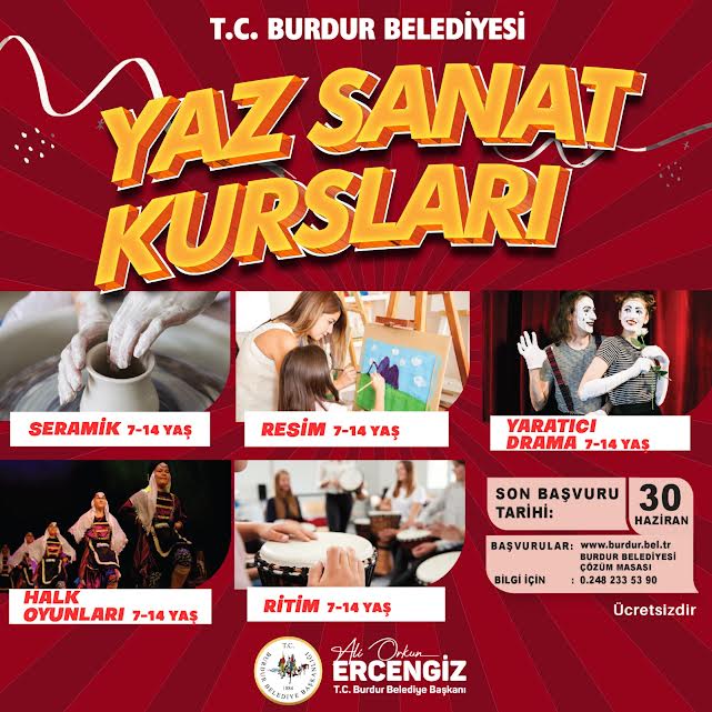 Konuyla ilgili açıklama yapan Burdur Belediye Başkanı Ercengiz, “Çocuklarımızın yaz tatilini verimli ve eğlenceli geçirmesi için sanat ve spor kurslarımızı ücretsiz olarak sunuyoruz. Tüm çocuklarımızı bekliyoruz.” dedi.