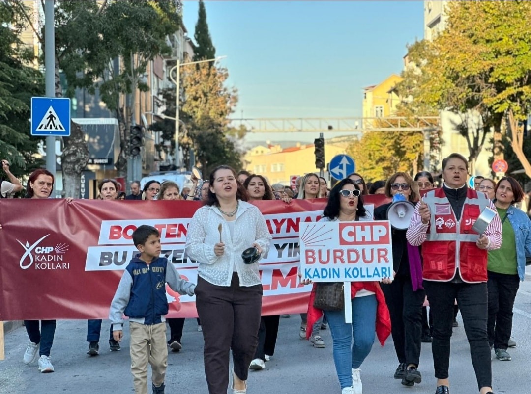Burdur’da da CHP Burdur Kadın kolları ve Burdurlu kadınlar tencere ve tavalara vurarak yürüyüş yaptı.