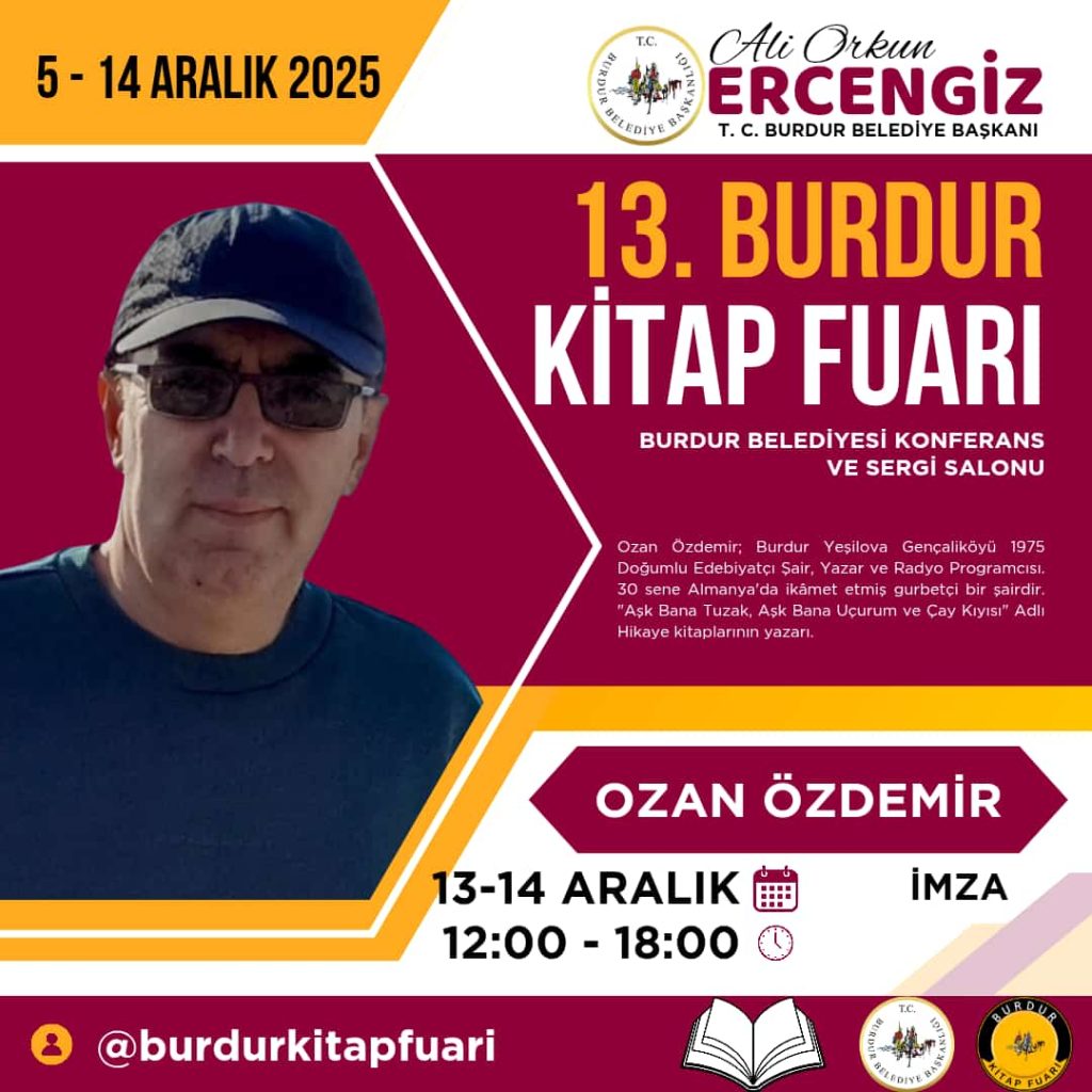 13-14 aralıkta Ozan Özdemir’in Burdur Kitap fuarında imza günü var. Şöyle bir dolaştım da kapının kenarına 2 masa ayırmışlar Burdur yazarlarına. İçerde bir yer bile vermemişler. Bu ayıp da organizasyonculara yeter de artar bile.