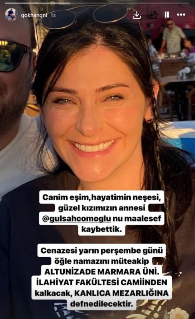 Oyuncunun eşi Gökhan Günal Instagram hesabından yaptığı paylaşımda acı haberi duyurdu. Gökhan Günal “Canım eşim, hayatımın neşesi, güzel kızımın annesini maalesef kaybettik. Cenazesi yarın öğle namazına müteakip Altunizade Marmara Üniversitesi İlahiyat Fakültesi Camii’nden kalkacak, Kanlıca Mezarlığı’na defnedilecektir” dedi.