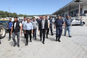 Vali Öksüz başta İnsuyu Fasulyesi olmak üzere bölge halkının alın teriyle ürettiği ürünlerin pazarlandığı Çatağıl Köyü meyve sebze alım satım alanında incelemede bulundu.